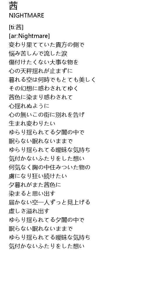 | [00:21.77] | 変わり果てていた貴方の側で |