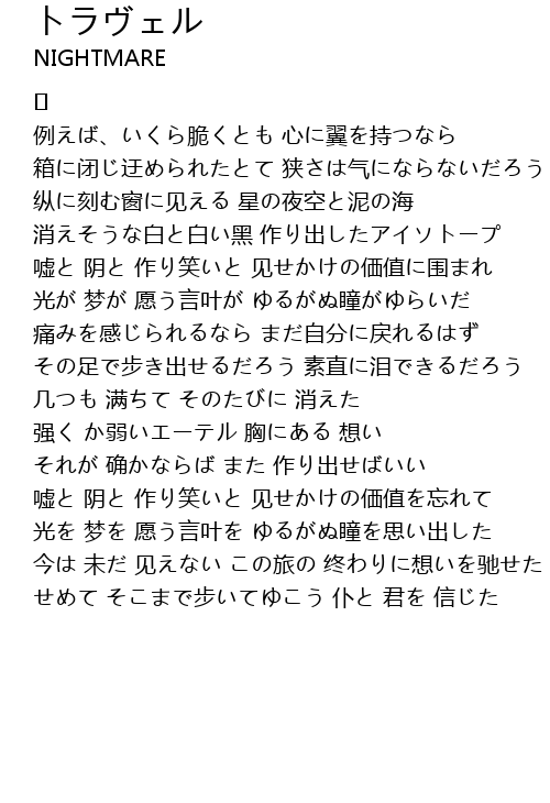 | 今は 未だ 见えない この旅の 终わりに想いを驰せた | |