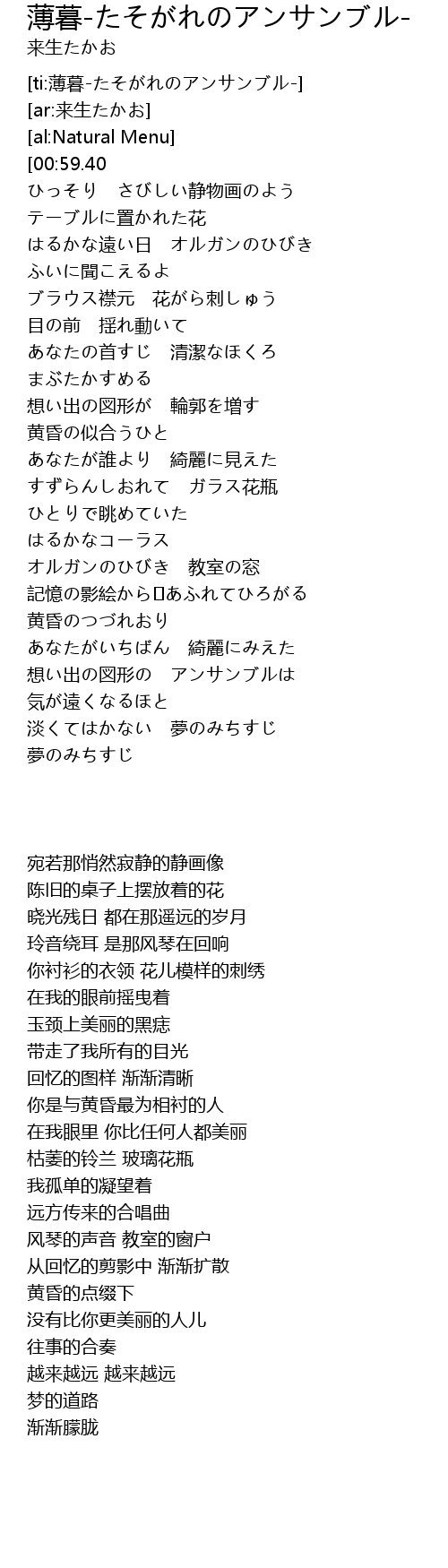 | [ti:薄暮-たそがれのアンサンブル-] | |
