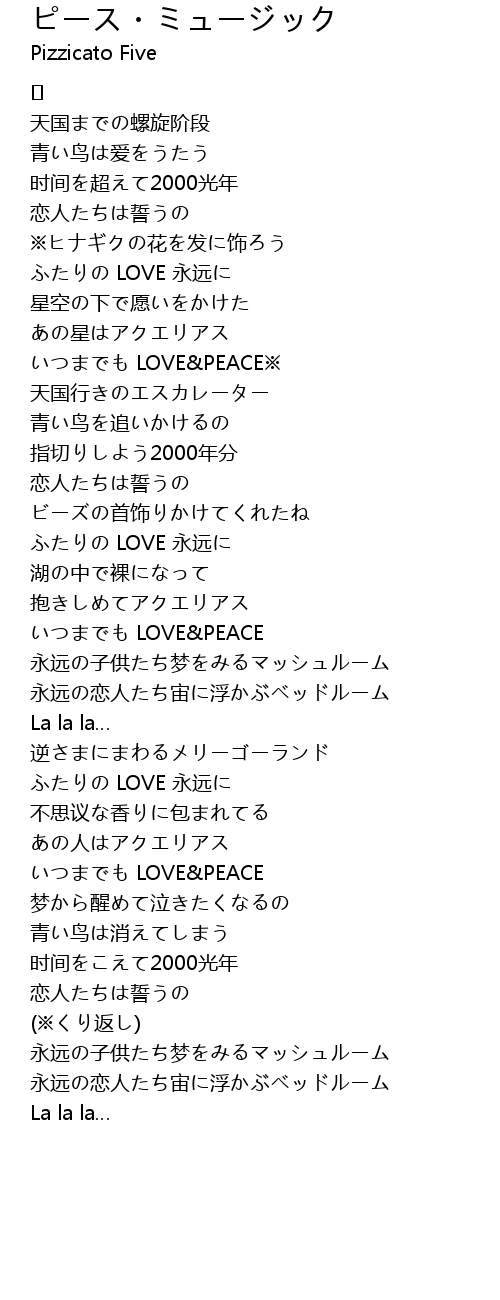 | 歌曲 | ピース・ミュージック |