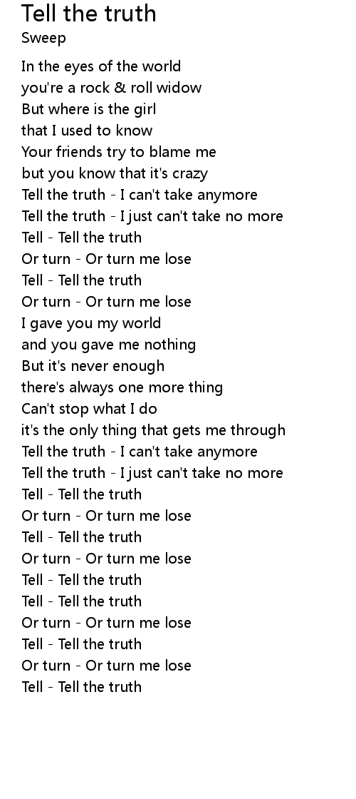 Tell the truth - I can't take anymore |