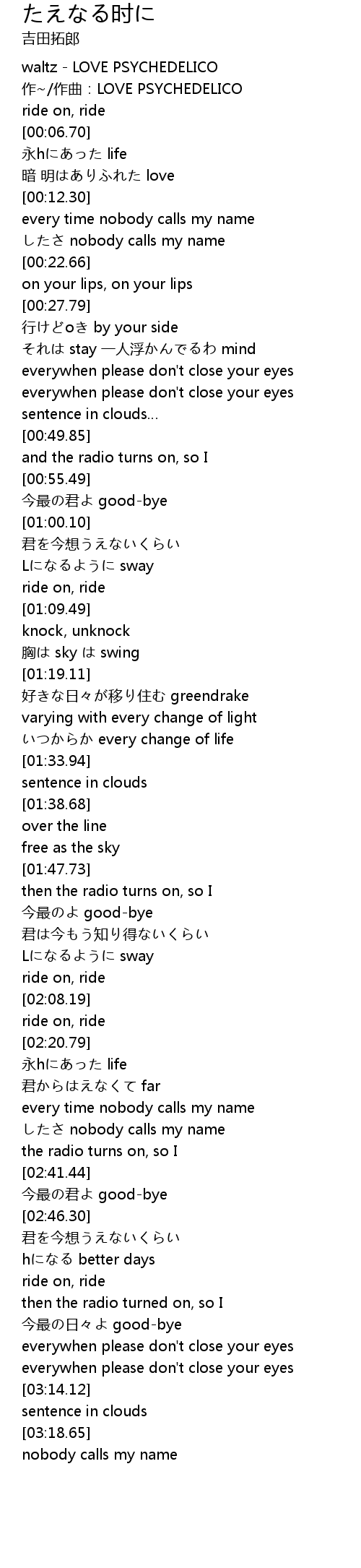 | [00:02.09] | 作~/作曲:LOVE PSYCHEDELICO |
