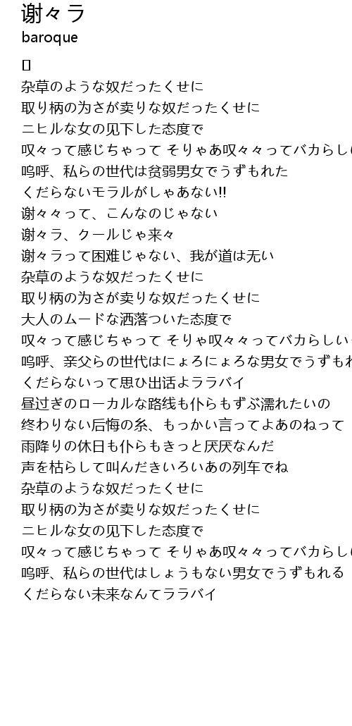 | 叹々って感じちゃって そりゃ叹々々ってバカらしいって | |