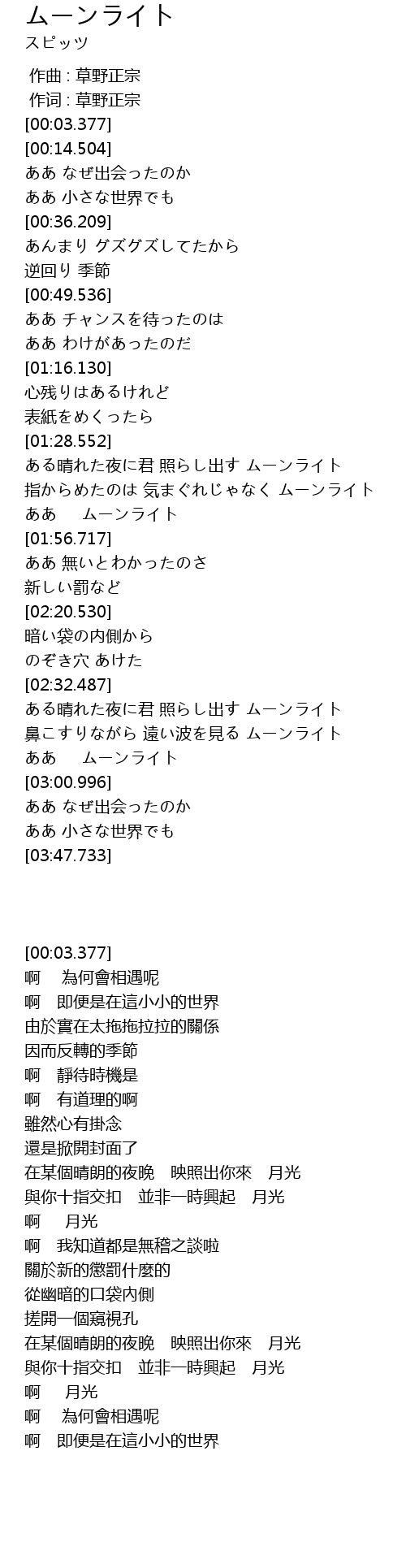 | [02:42.478] | 鼻こすりながら 遠い波を見る ムーンライト |