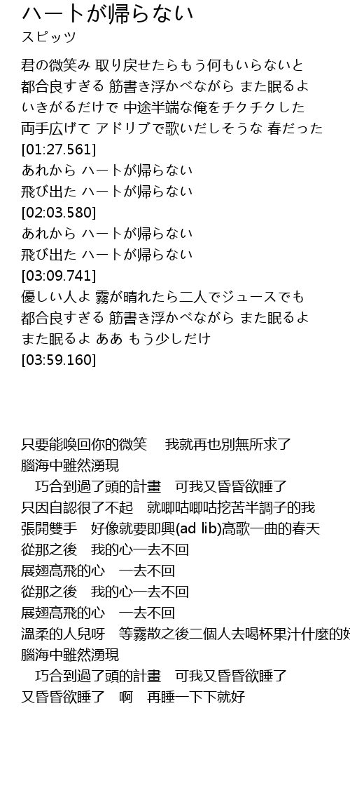| [02:52.222] | 飛び出た ハートが帰らない |