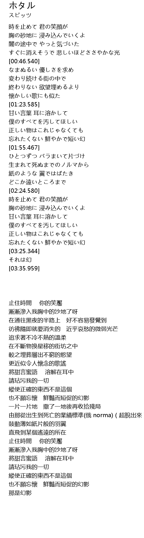 | [01:44.352] | 也不願忘懷 鮮豔而短促的幻影 |