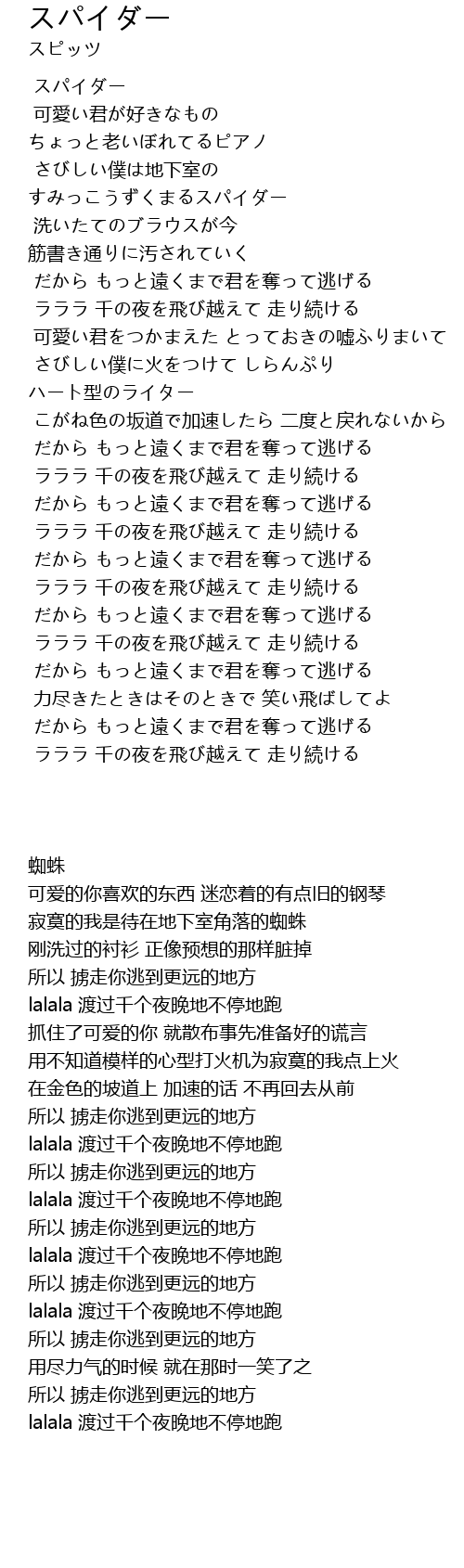 | 歌曲 | スパイダー |