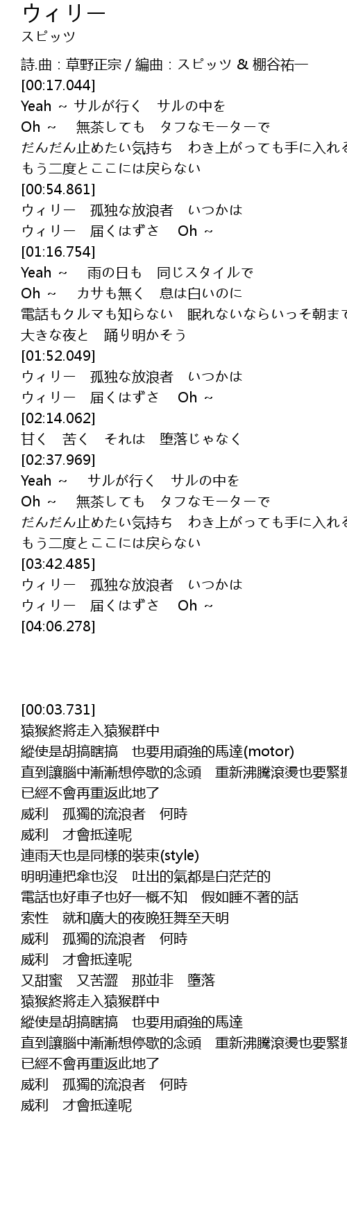 | [03:43.574] | ウィリー 孤独な放浪者 いつかは |