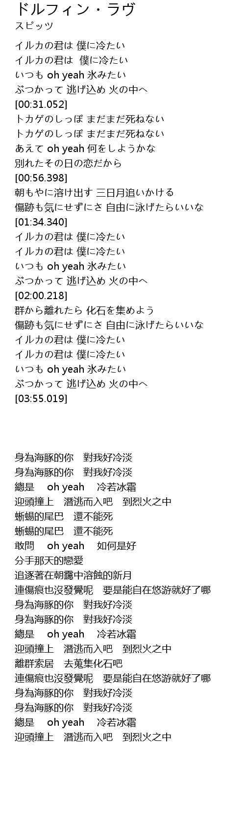 | [03:36.341] | イルカの君は 僕に冷たい |