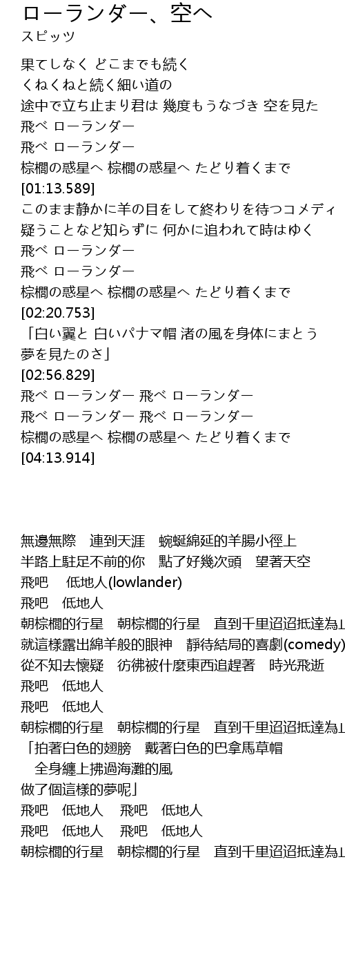 | [03:58.312] | 朝棕櫚的行星 朝棕櫚的行星 直到千里迢迢抵達為止 |