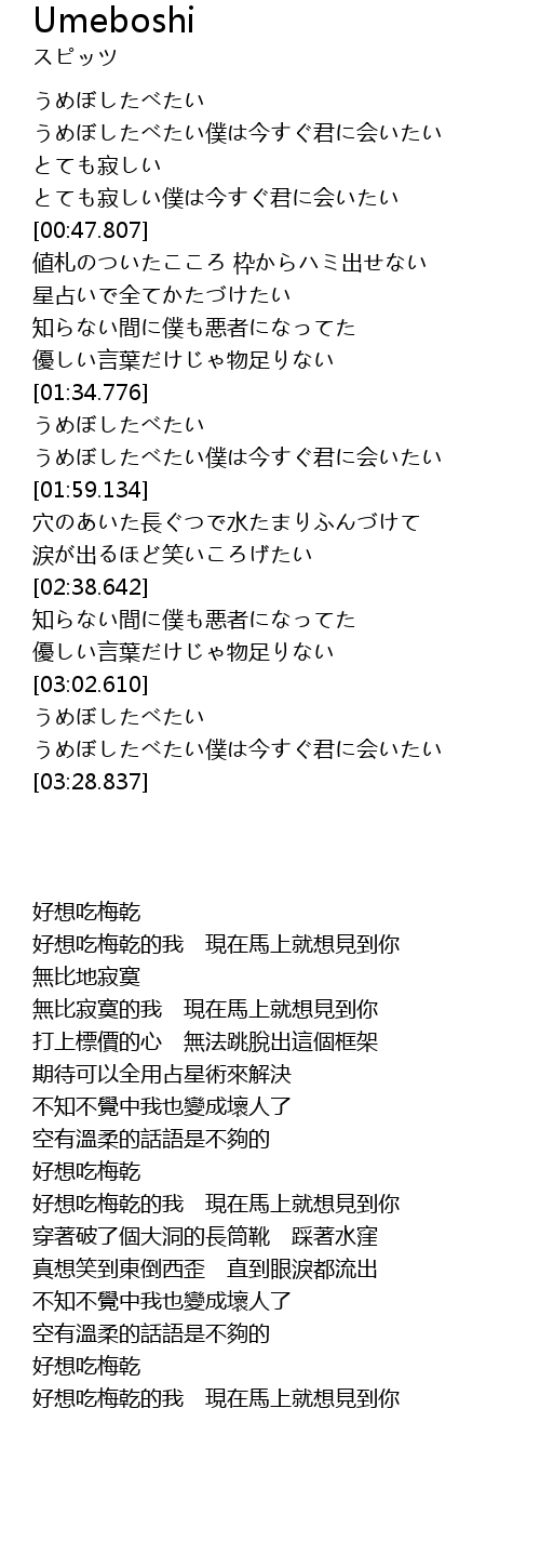 うめぼしたべたい僕は今すぐ君に会いたい |