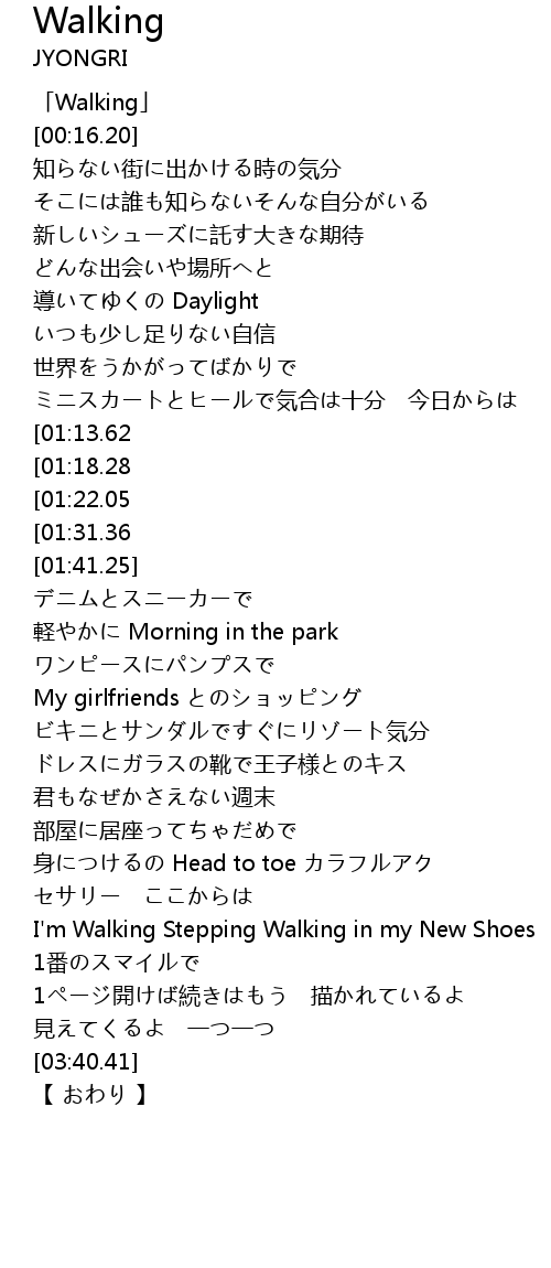 | [00:01.20] | 「Walking」 |