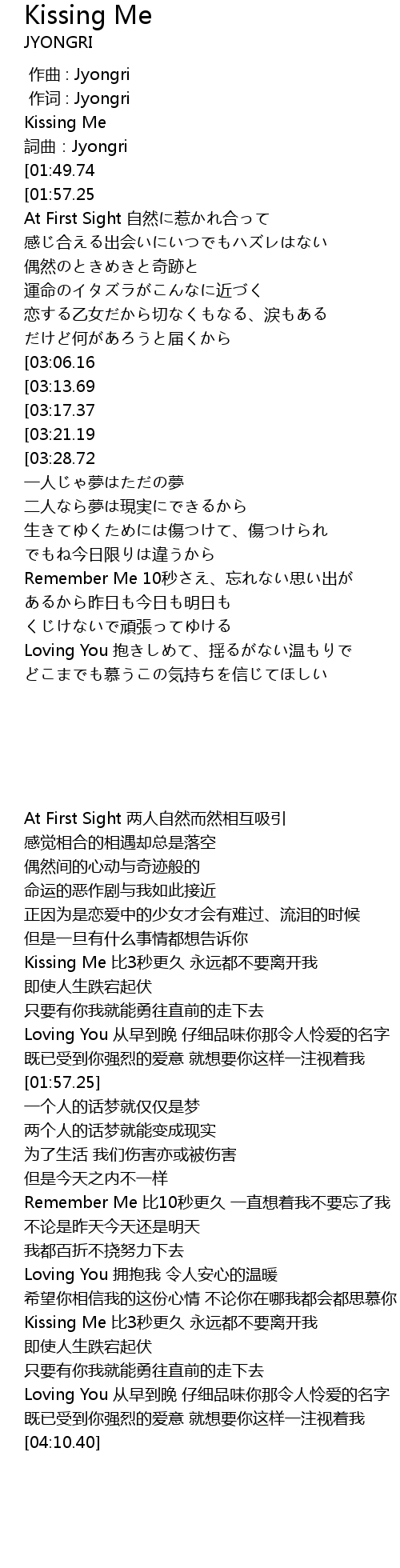 | [03:06.16] | Kissing Me 比3秒更久 永远都不要离开我 |