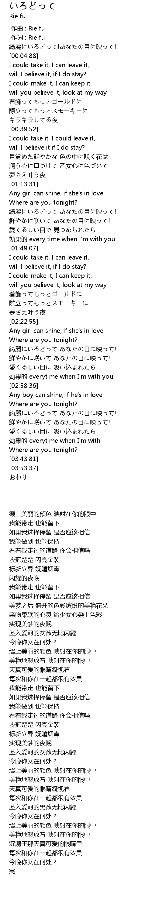 | [00:00.336] | 作词 : Rie fu |