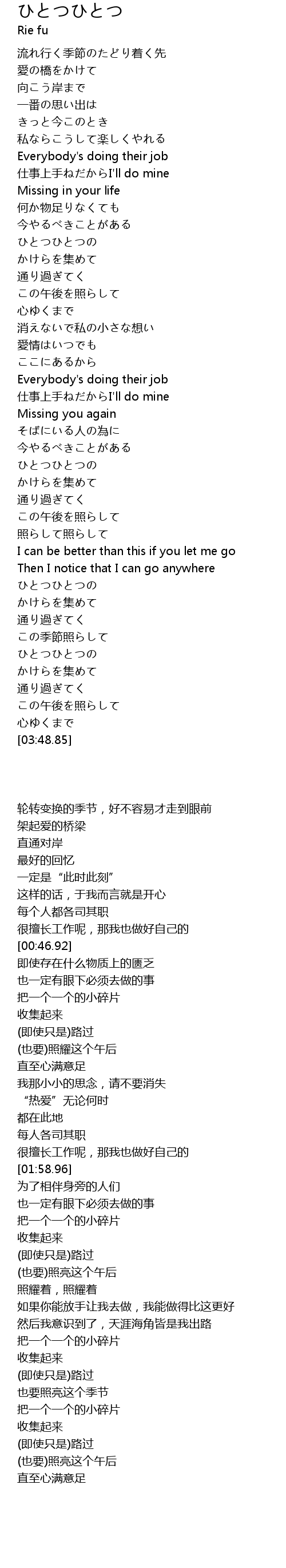 | [03:23.29] | ひとつひとつの |