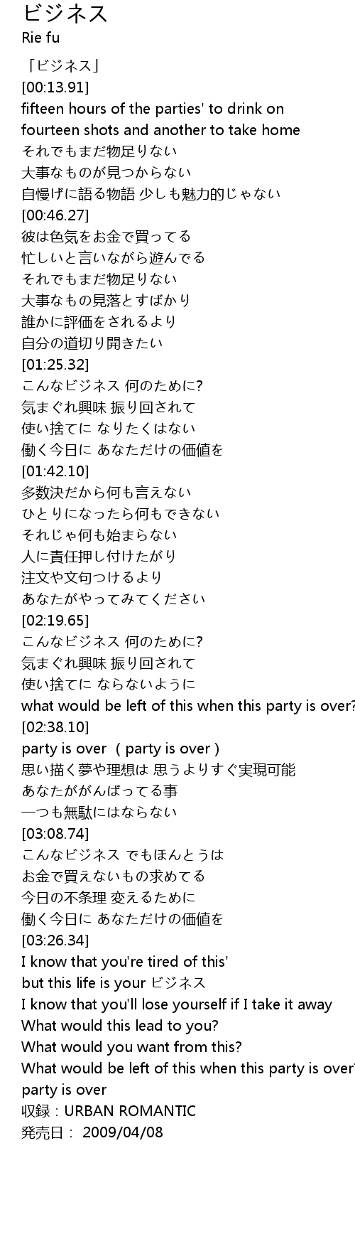 | [03:28.67] | but this life is your ビジネス |
