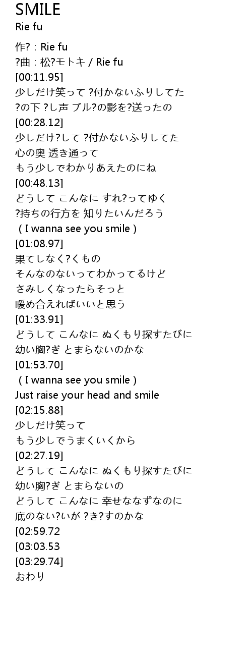 | [03:05.95][02:59.72] | (I wanna see you smile) |