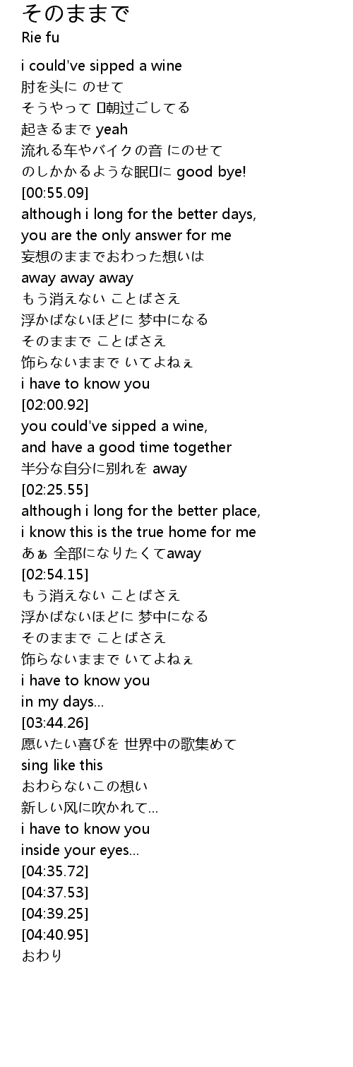 | [01:47.91] | 饰らないままで いてよねぇ |