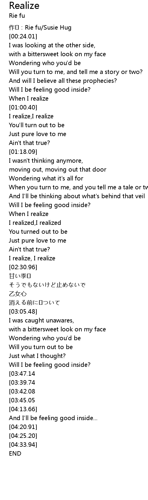 | [04:03.96][03:47.14][03:30.30] | I realized, I realized |