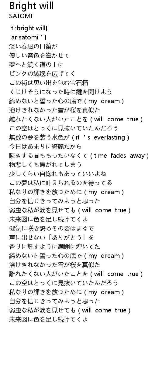 | [01:58.390] | 私なりの輝きを放つために(my dream) |