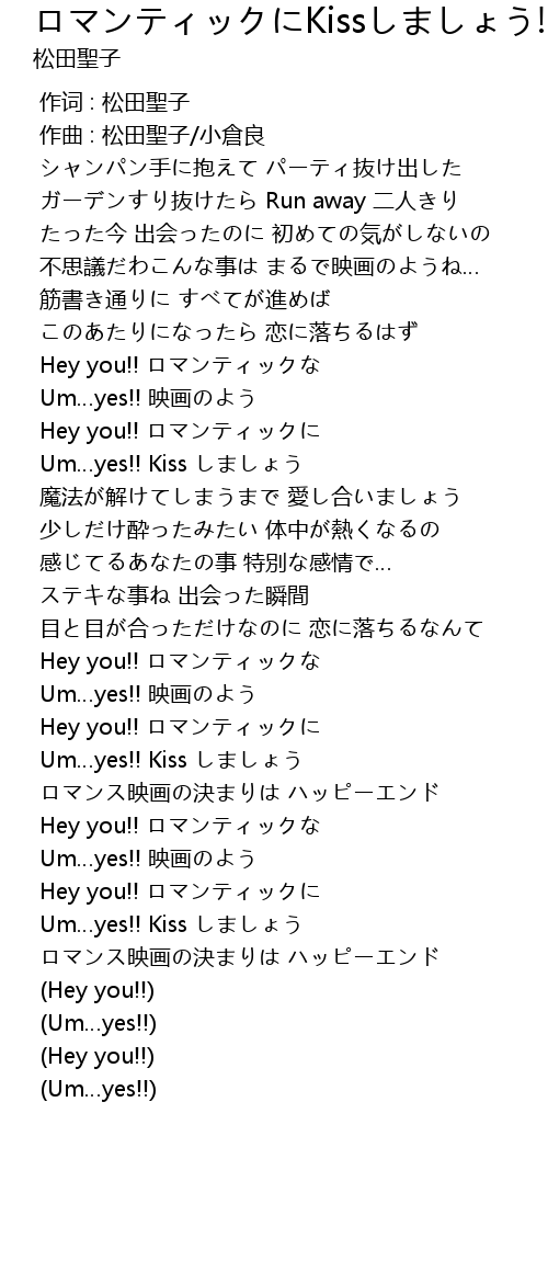 | [02:34.806] | Hey you!! ロマンティックに |