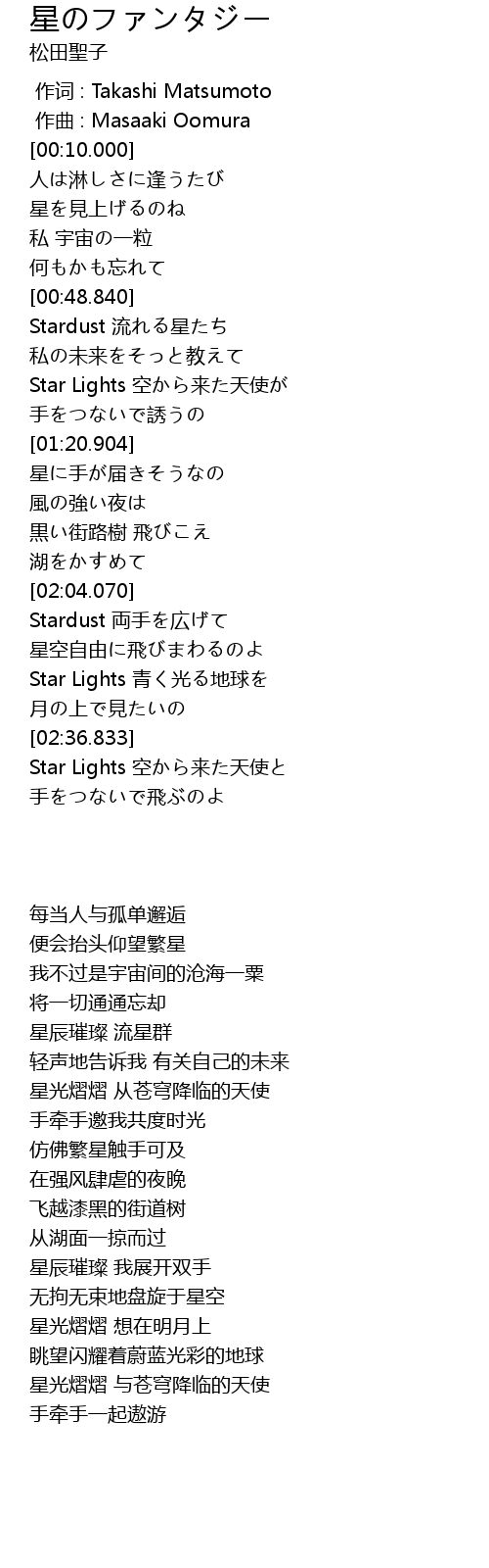 | [02:38.794] | Star Lights kōng lái tiān shǐ |