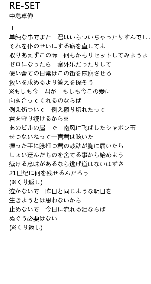 | 歌曲 | RE-SET |