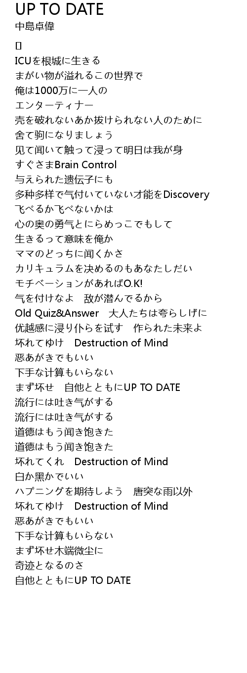 | 歌曲 | UP TO DATE |
