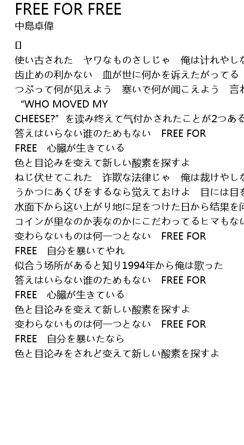 | 变わらないものは何一つとない FREE FOR FREE 自分を暴いてやれ | |