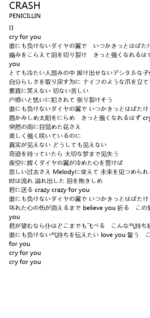 | 痛みをこらえて泪を切り裂け きっと强くなれるはず cry for you | |