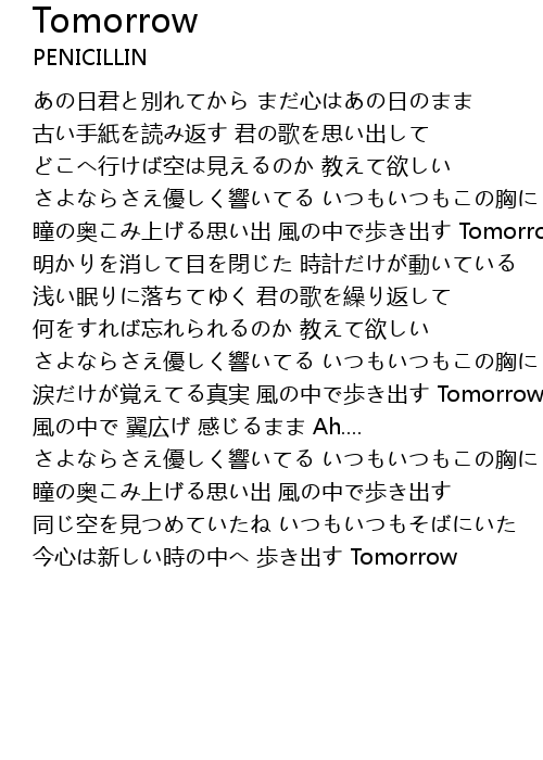 | 瞳の奥こみ上げる思い出 風の中で歩き出す Tomorrow | |