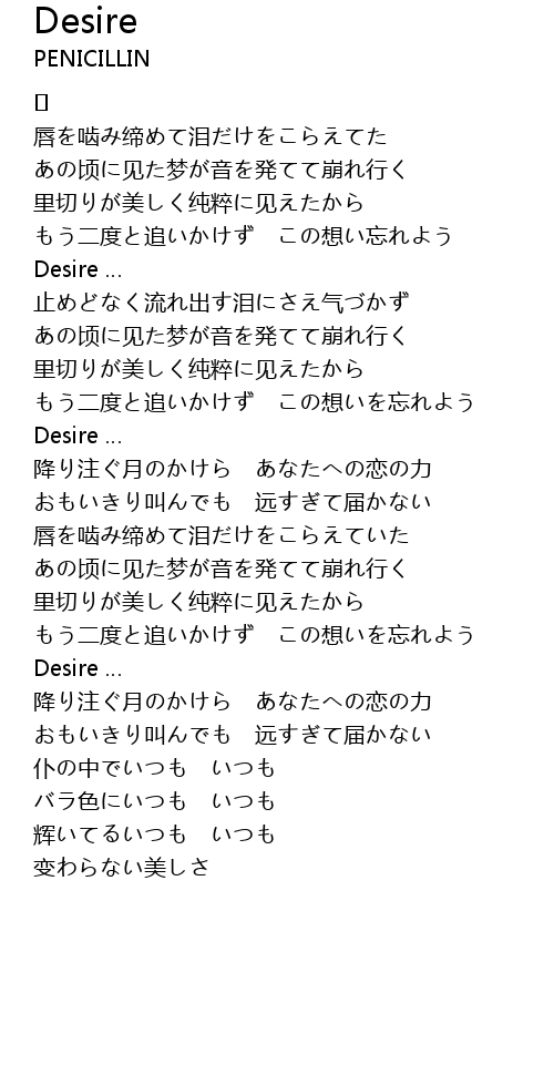 | 止めどなく流れ出す泪にさえ气づかず | |