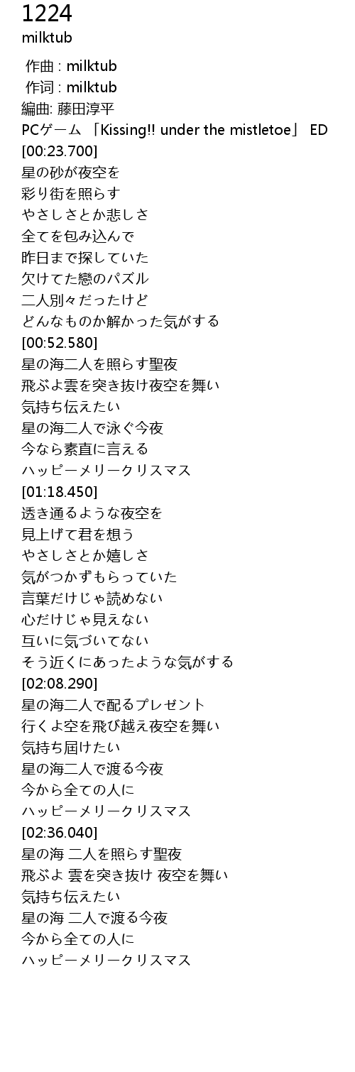 | [02:56.430] | 星の海 二人を照らす聖夜 |