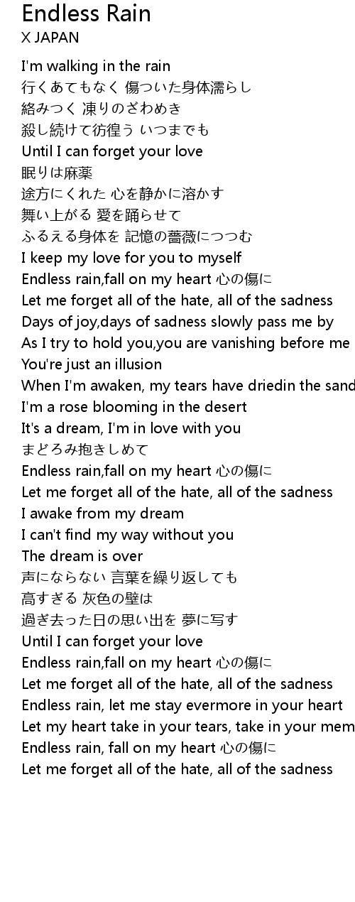 | Endless rain, let me stay evermore in your heart | |