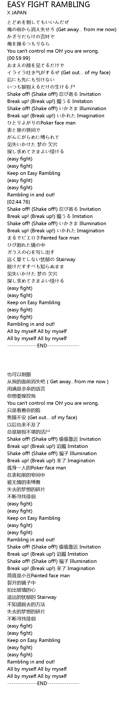 | [02:51.24] | Break up! (Break up!) 谄媚 Imitation |