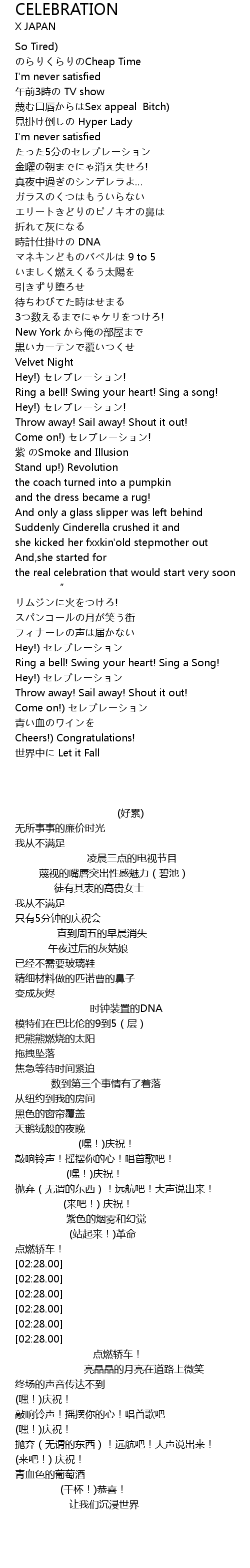 | [02:09.53] | (嘿!)庆祝! |