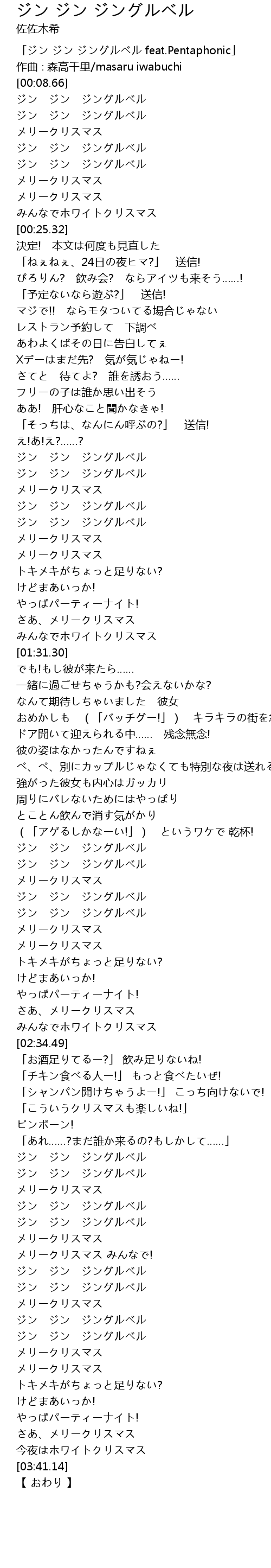 | [00:00.00] | 「ジン ジン ジングルベル feat.Pentaphonic」 |