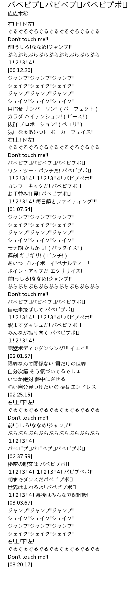 | [02:43.75] | 1!2!3!4! 1!2!3!4! パピプペポ!! |