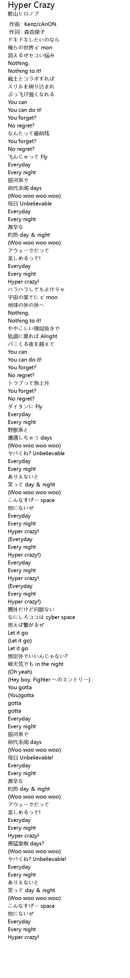 | 歌曲 | Hyper Crazy |