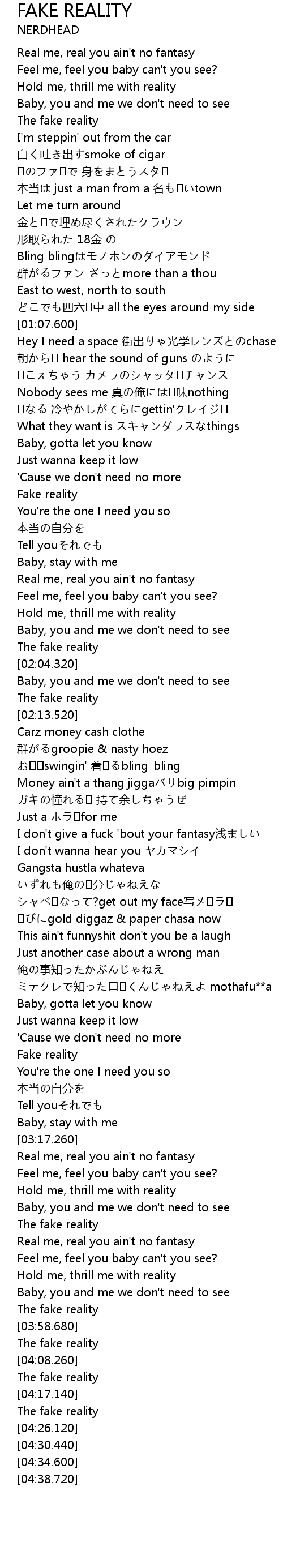 | [00:23.200] | Real me, real you ain't no fantasy |