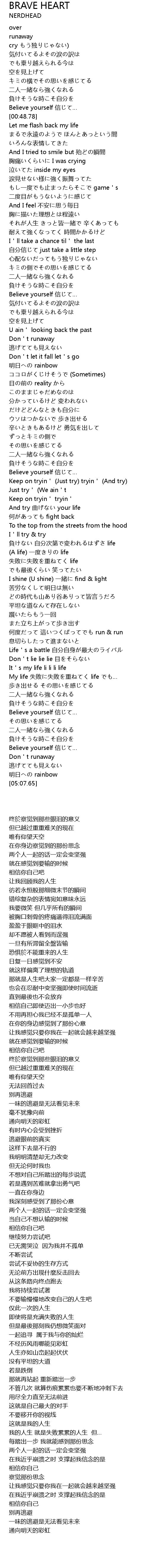 | [04:02.39] | 何度だって 這いつくばってでも run & run |