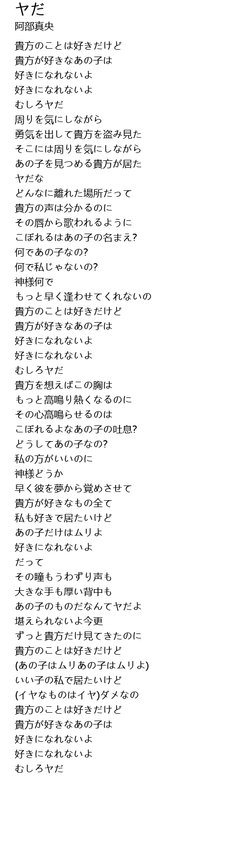 | [02:59.96] | あの子のものだなんてヤだよ |