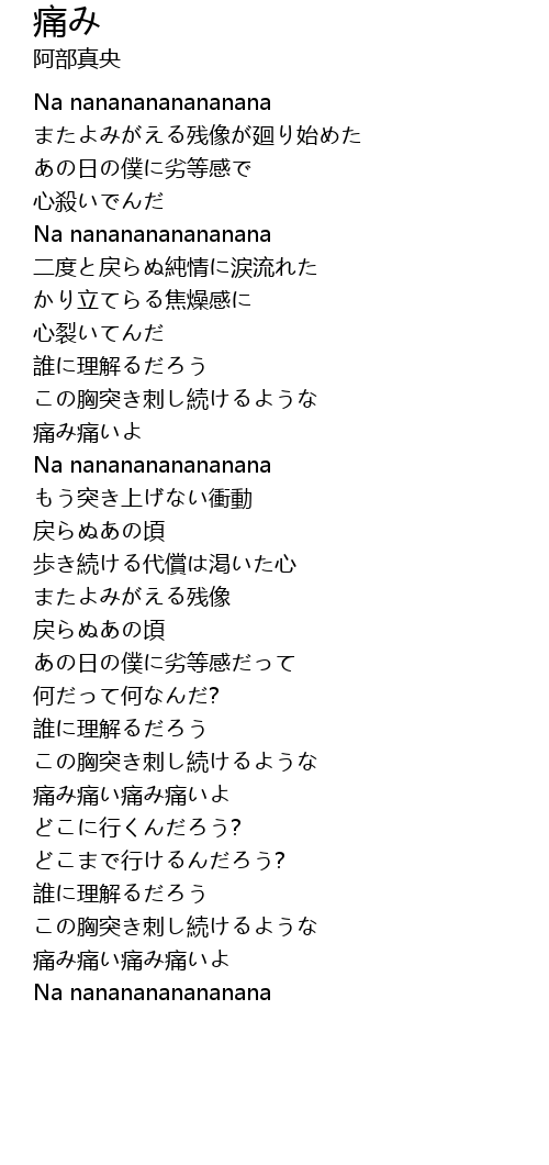 | [01:04.20] | 痛み痛いよ |