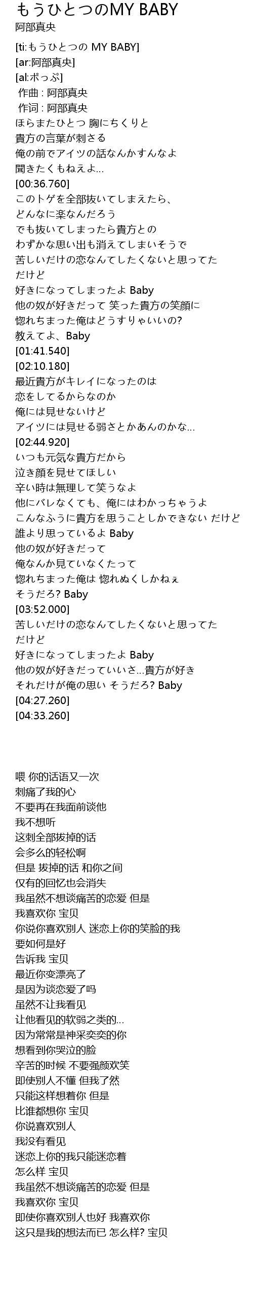 | [04:02.530] | 好きになってしまったよ Baby |