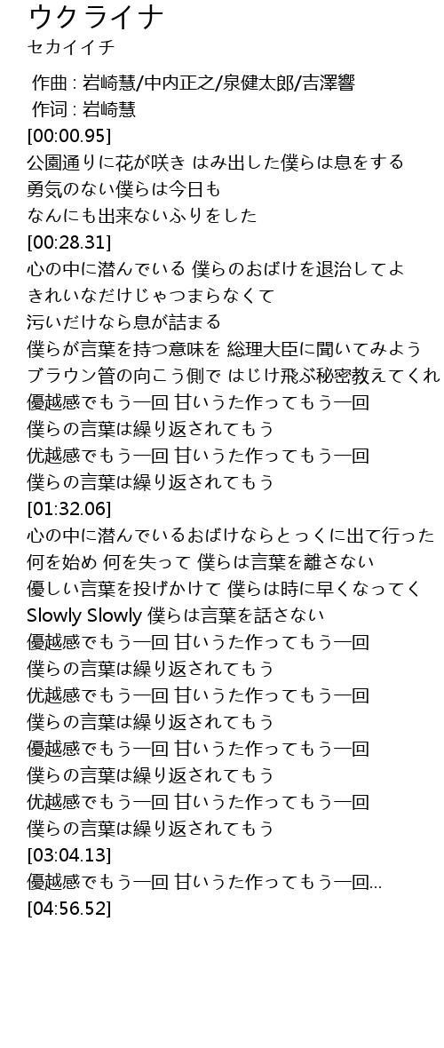 | [03:58.86] | 優越感でもう一回 甘いうた作ってもう一回... |
