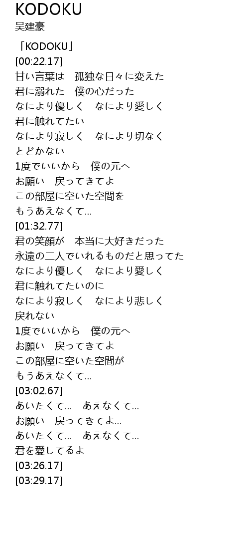 | [02:40.58] | 1度でいいから 僕の元へ |