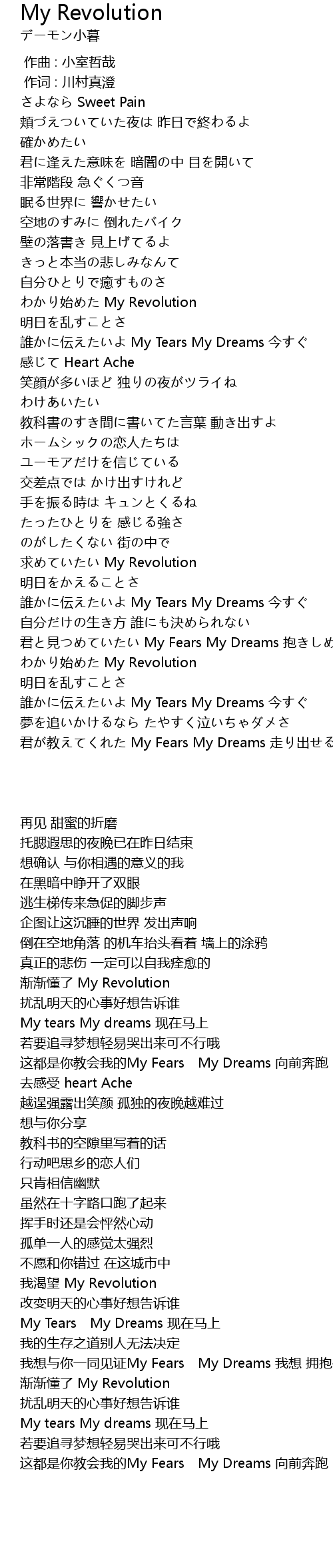 | 歌曲 | My Revolution |