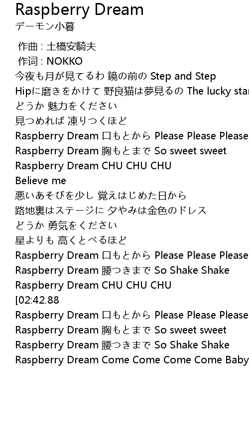 | [02:59.10] | Raspberry Dream 口もとから Please Please Please |