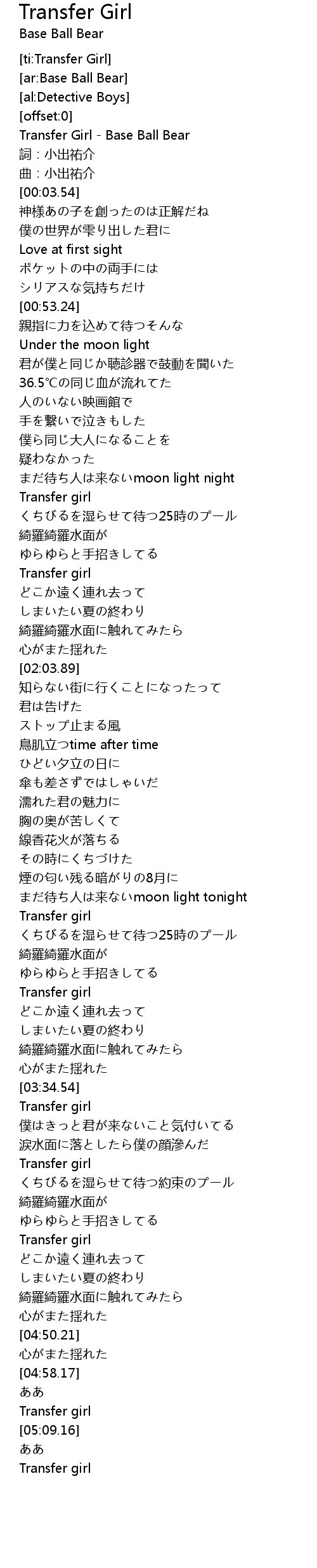 | [00:01.17] | Transfer Girl - Base Ball Bear |