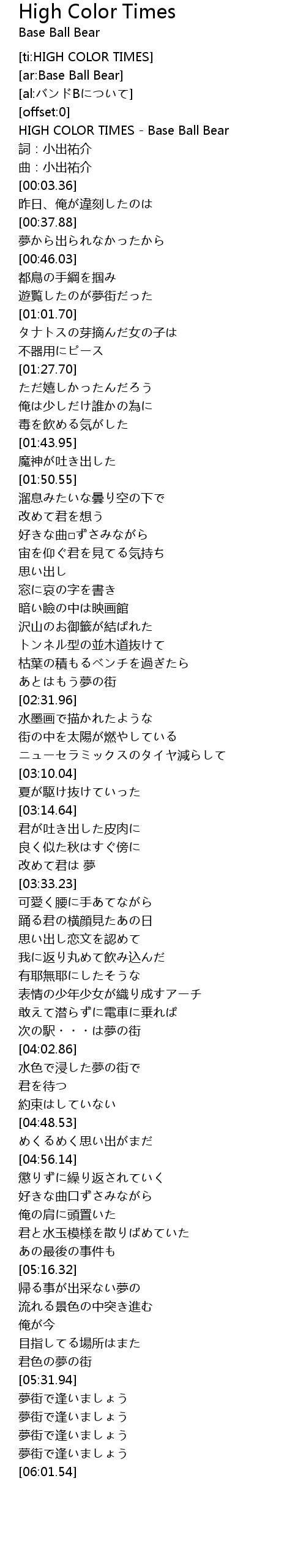 | [00:00.00] | HIGH COLOR TIMES - Base Ball Bear |